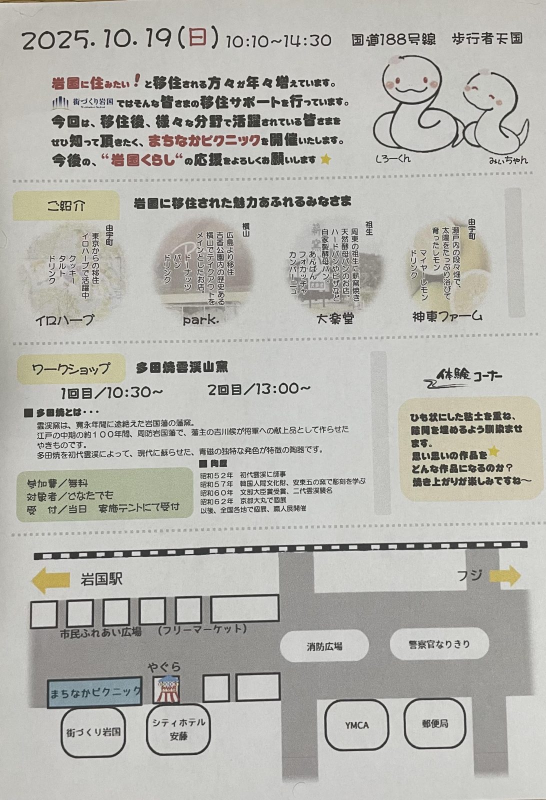 令和7年10月19日(日)岩国駅通に無料陶芸体験コーナーが出展されます